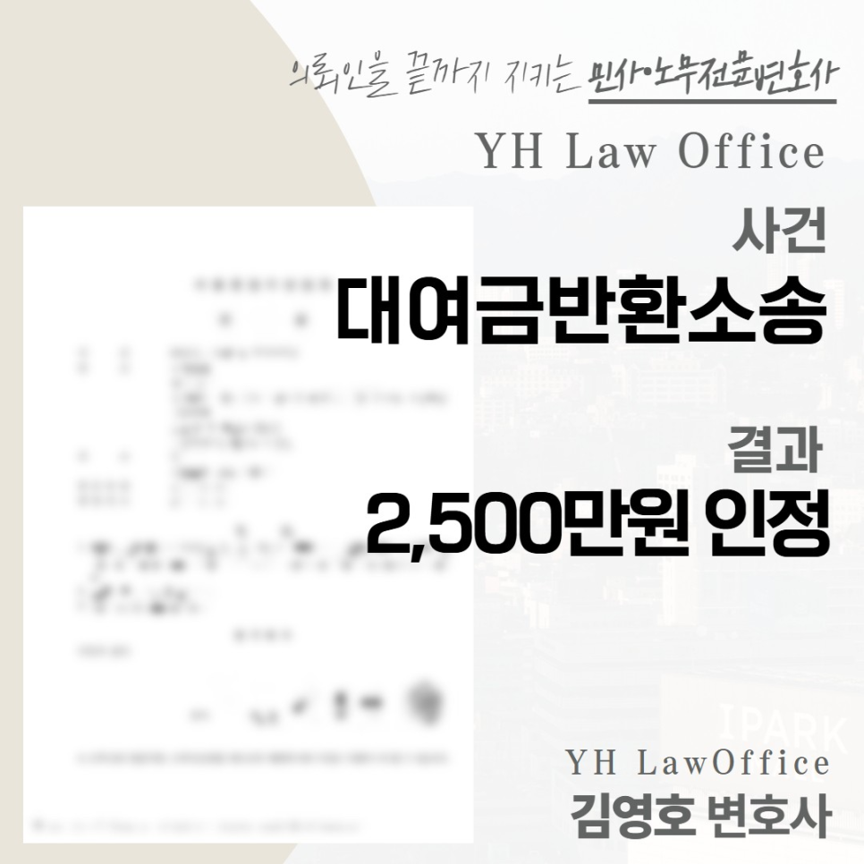 소액민사소송변호사, 대여금 ‘2,500만원’ 받은 사례