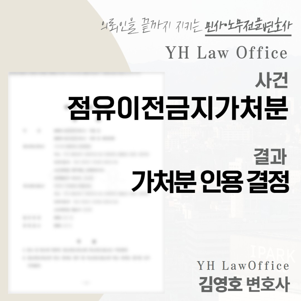 점유이전금지가처분, ‘가처분 인용’ 결정받은 업무사례