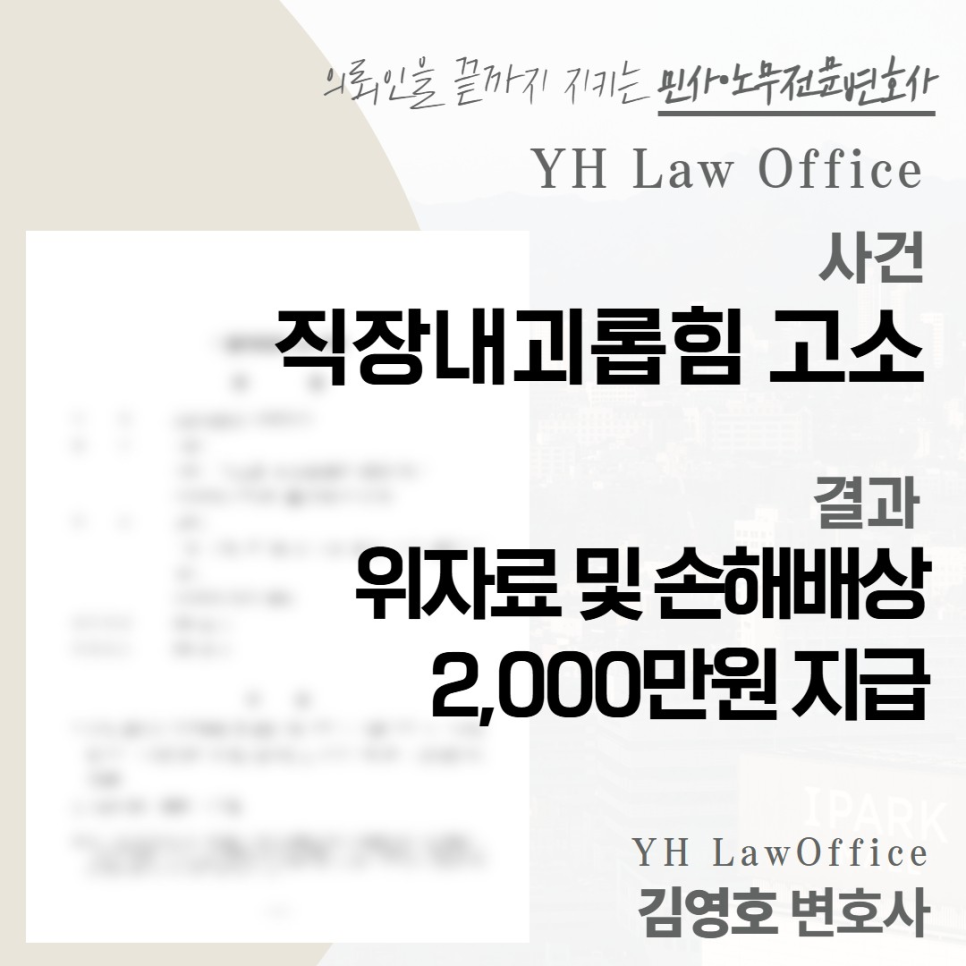 서초직장내괴롭힘변호사, ‘2,000만원’ 지급받은 업무사례