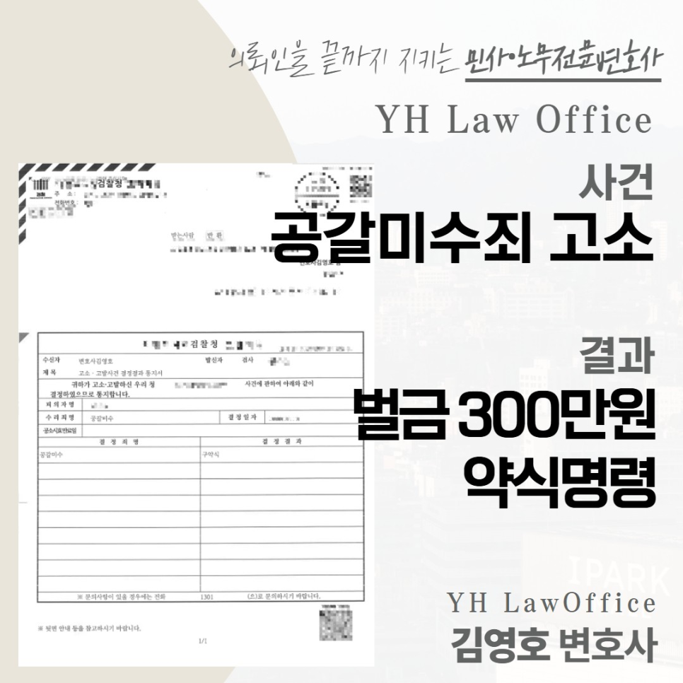공갈미수죄 고소, ‘벌금 300만원 약식명령’ 결정받은 사례